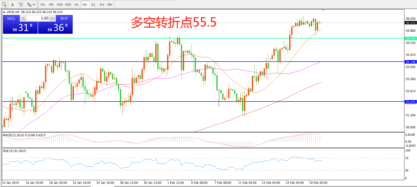 交易策略:在55.50  之上看涨,目标58.00    62.00