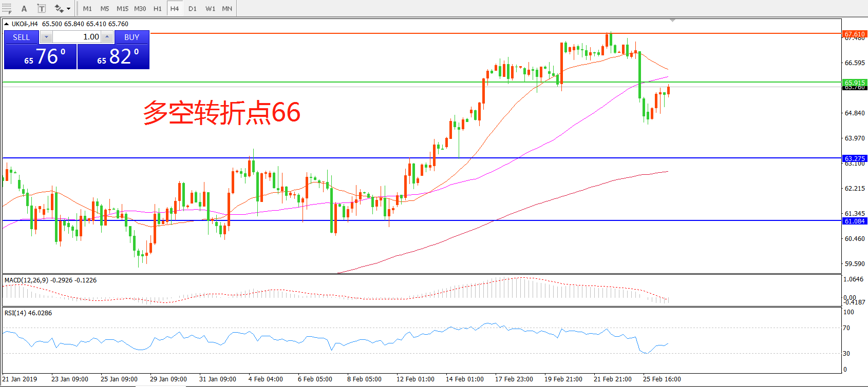交易策略:在66.00之下看跌,目标61.00   58.00