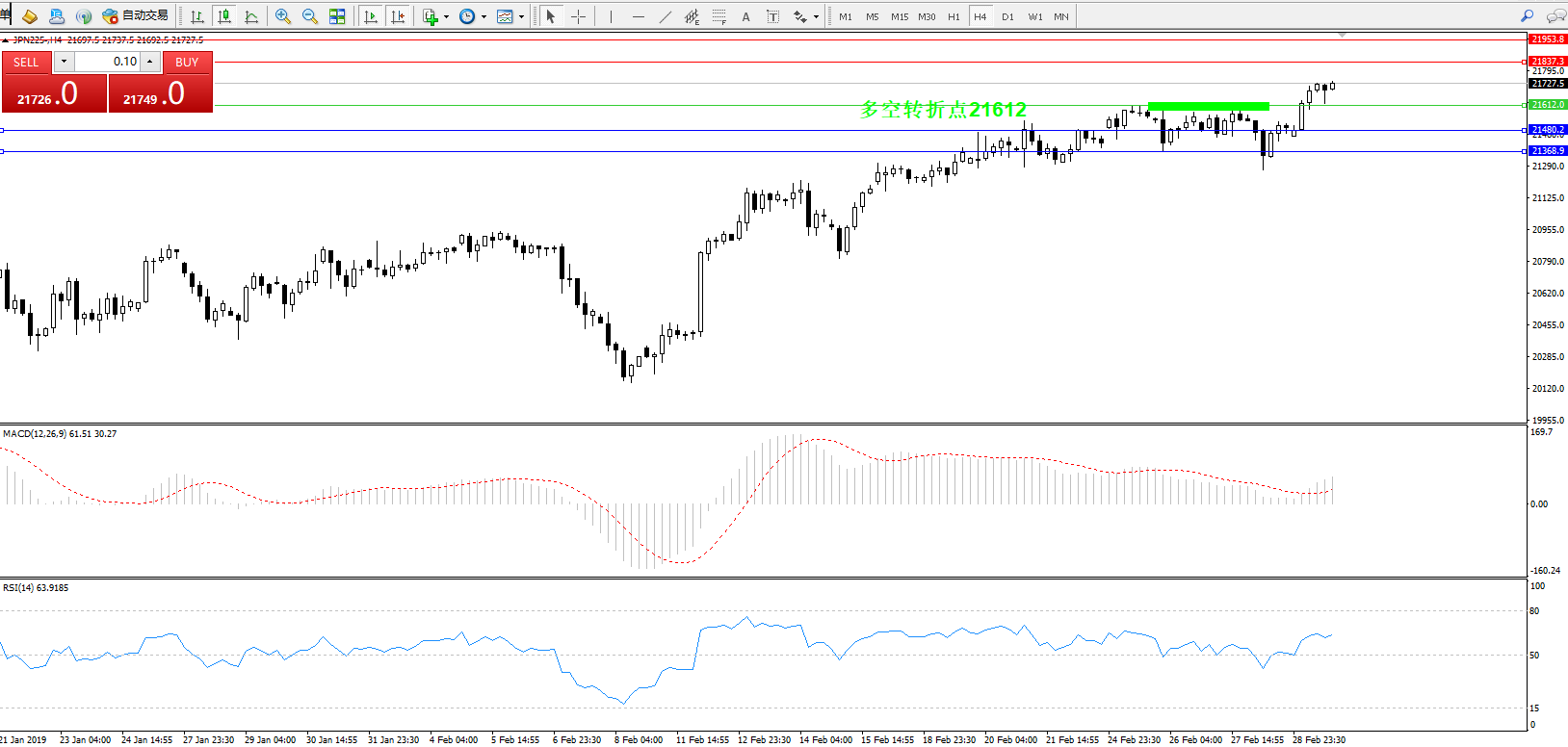 日本股市日经指数 .N225 上周五涨至两个半月高点,受期货买盘提振。此前美国好於预期的GDP数据提振,助日本出口商一臂之力。日经指数N225 收涨1.0%21,602.69点,为1213日来最高收位。上周该股指累计上涨0.8%,连续第三周周线上涨。市场仍将情绪谨慎,关注美中贸易谈判进展。美国总统特朗普上周四警告称,如果与中国的贸易协议不够好,他可能放弃。