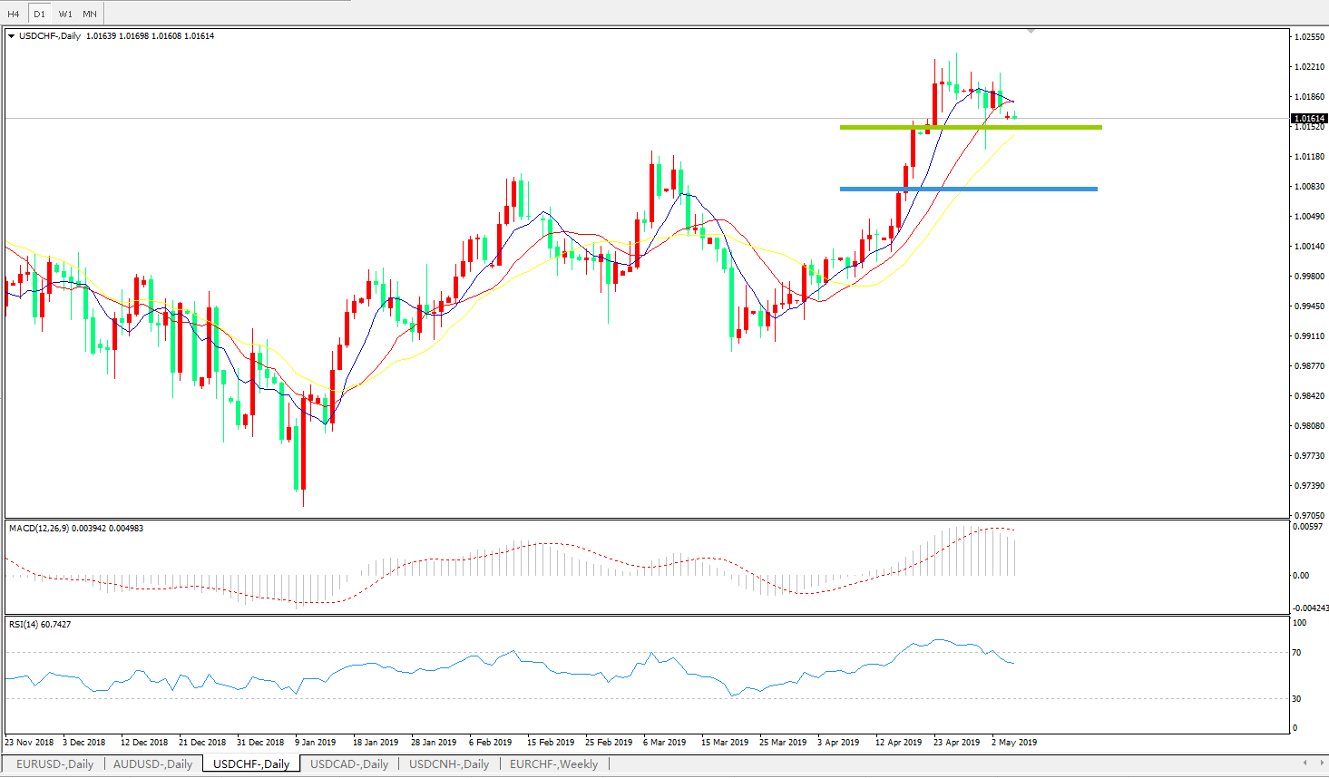 美元瑞郎USDCHF   日线图: