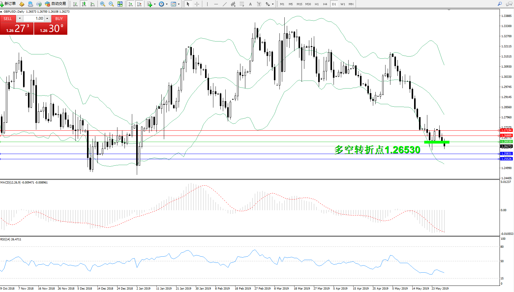 交易策略:1.26530下方看跌,目标1.25831、1.25526