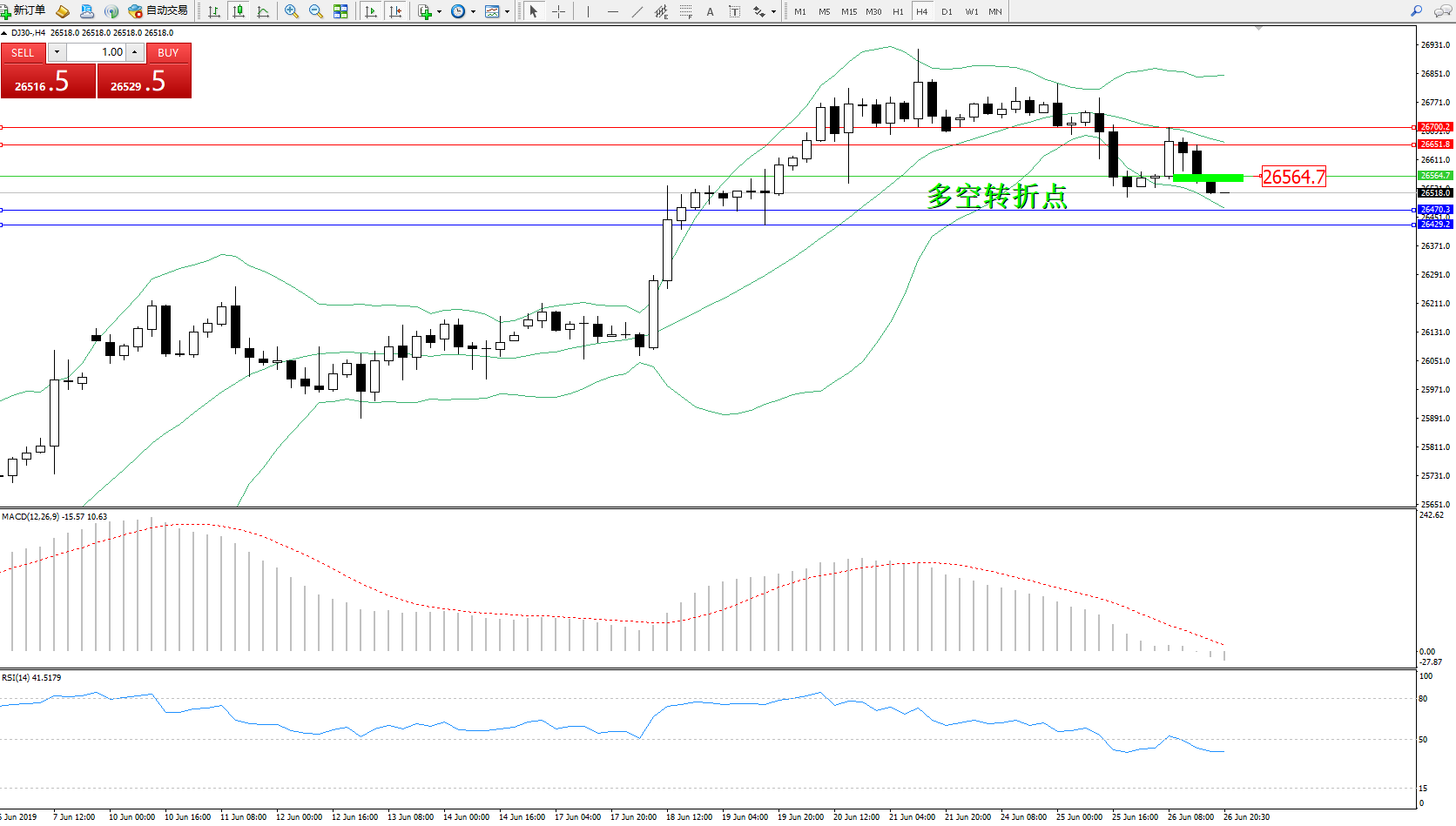 道琼斯指数6月26日(周三)收盘下跌11.40点,跌幅0.04%,报26536.82点。特朗普预计将与中国国家主席习近平在日本举行的20国集团峰会上会晤;特朗普说,有可能在峰会上达成协议。在圣路易斯联储主席布拉德对未来降息表示了谨慎态度,布拉德表示,将利率下调25个基点的“预防性降息”足以避免经济增长放缓幅度大于预期,认为50个基点会过头。