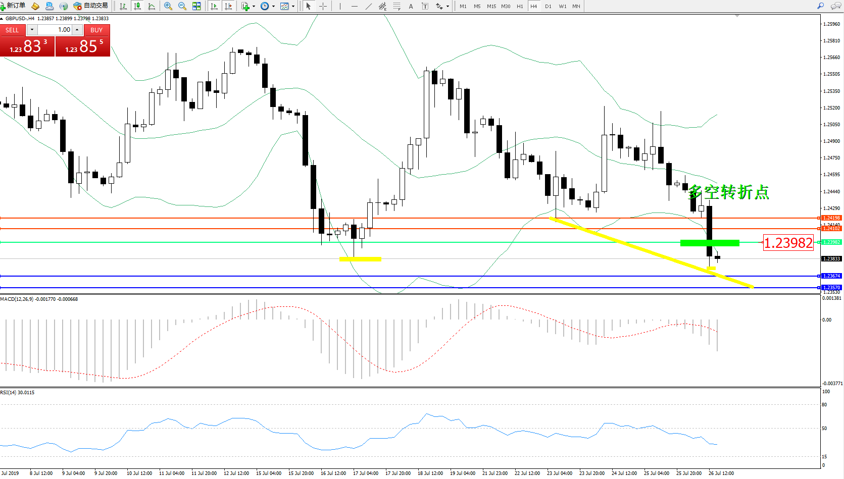 交易策略:1.23982下方看跌,目标1.236741.23570