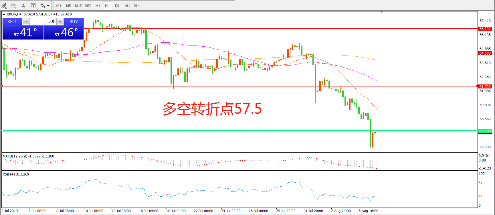 交易策略:在57.50之下看跌,目标53.00 50.00