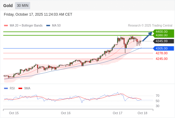 在 4305.00 之上,看涨,目标价位为 4380.00 ,然后为 4400.00 。