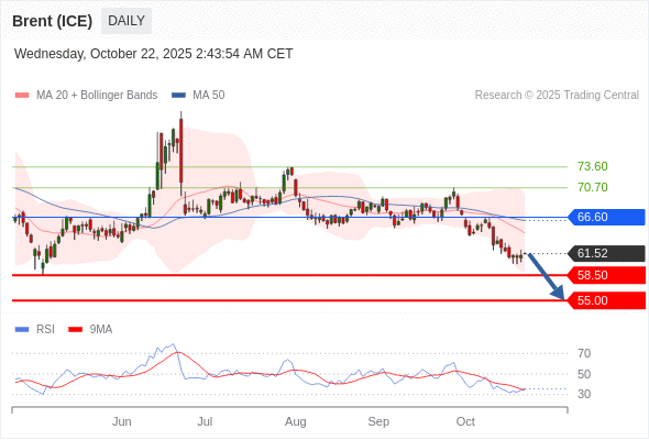交易策略: 在 66.60 之下,看跌,目标价位为 58.50 ,然后为 55.00 。