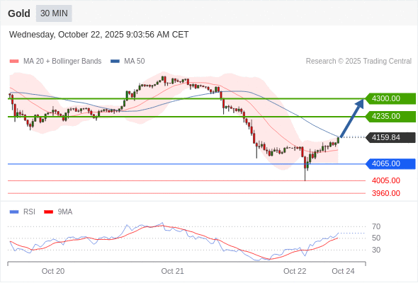 在 4065.00 之上,看涨,目标价位为 4235.00 ,然后为 4300.00 。