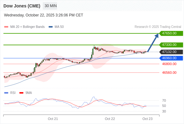 在 46960.00 之上,看涨,目标价位为 47330.00 ,然后为 47650.00 。
