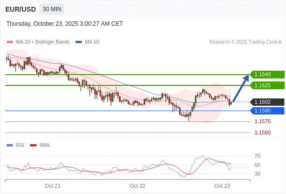 在 1.1590 之上,看涨,目标价位为 1.1625 ,然后为 1.1640 。
