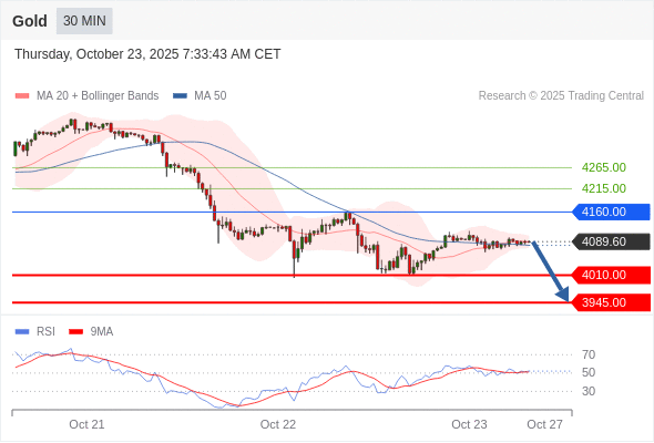 在 4160.00 之下,看跌,目标价位为 4010.00 ,然后为 3945.00 。