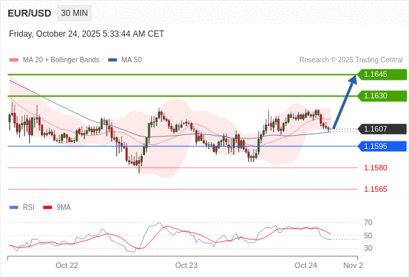 在 1.1595 之上,看涨,目标价位为 1.1630 ,然后为 1.1645 。