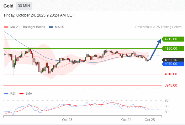 在 4070.00 之上,看涨,目标价位为 4160.00 ,然后为 4215.00 。