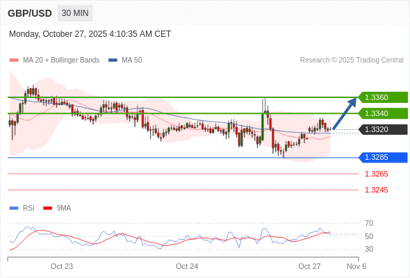 在 1.3285 之上,看涨,目标价位为 1.3360 ,然后为 1.3380 。