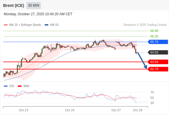 在 65.70 之下,看跌,目标价位为 63.50 ,然后为 62.70 。