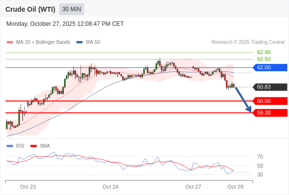 在 62.00 之下,看跌,目标价位为 60.00 ,然后为 59.30 。