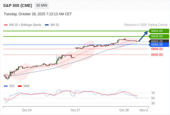 交易策略: 在 6888.00 之上,看涨,目标价位为 6928.00 ,然后为 6954.00 。