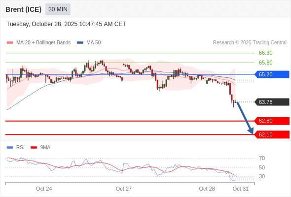 在 65.20 之下,看跌,目标价位为 62.80 ,然后为 62.10 。