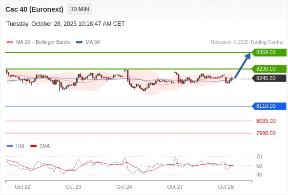 在 8110.00 之上,看涨,目标价位为 8290.00 ,然后为 8369.00 。