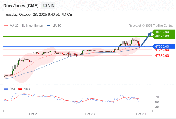 在 47760.00 之上,看涨,目标价位为 48170.00 ,然后为 48300.00 。