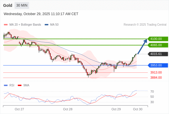 在 3953.00 之上,看涨,目标价位为 4065.00 ,然后为 4100.00 。