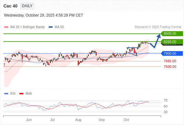 Cac 40 短线: 上升趋势。