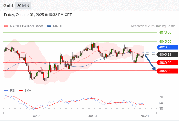 黄金现货 当日内: 短期关键阻力位在4028.00。
