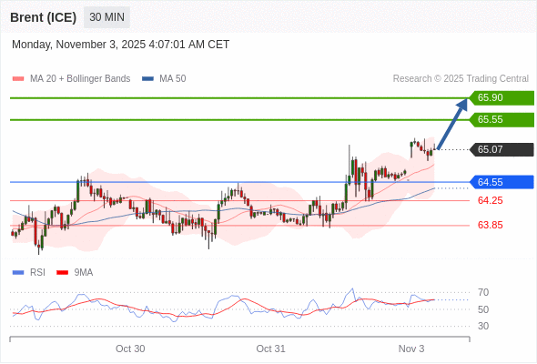 在 64.55 之上,看涨,目标价位为 65.55 ,然后为 65.90 。