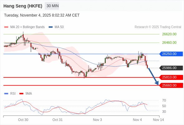 交易策略: 在 26250.00 之下,看跌,目标价位为 25810.00 ,然后为 25660.00 。