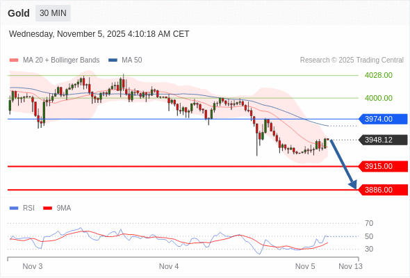 在 3974.00 之下,看跌,目标价位为 3915.00 ,然后为 3886.00 。