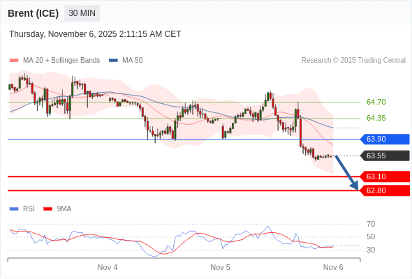 在 63.90 之下,看跌,目标价位为 63.10 ,然后为 62.80 。