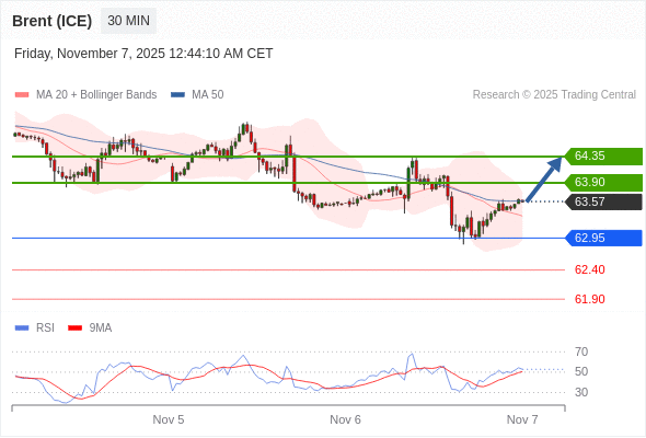 在 62.95 之上,看涨,目标价位为 63.90 ,然后为 64.35 。