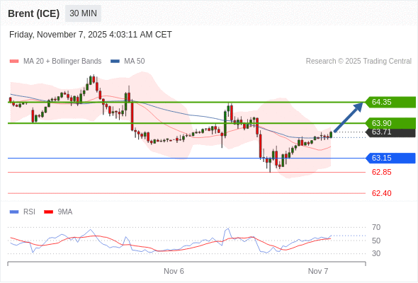 在 63.15 之上,看涨,目标价位为 63.90 ,然后为 64.35 。