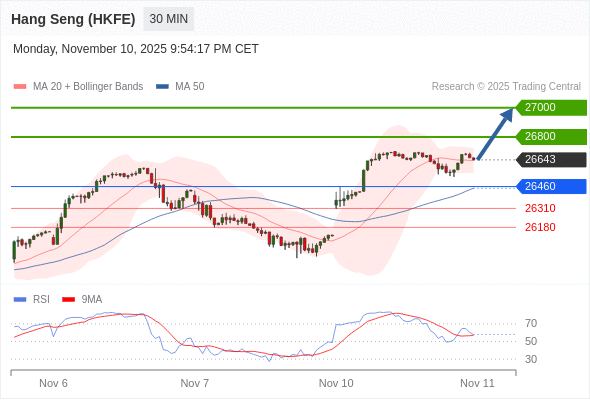 在 26460 之上,看涨,目标价位为 26800 ,然后为 27000 。
