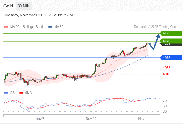 在 4075 之上,看涨,目标价位为 4140 ,然后为 4170 。
