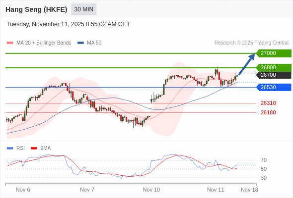 在 26530 之上,看涨,目标价位为 26800 ,然后为 27000 。