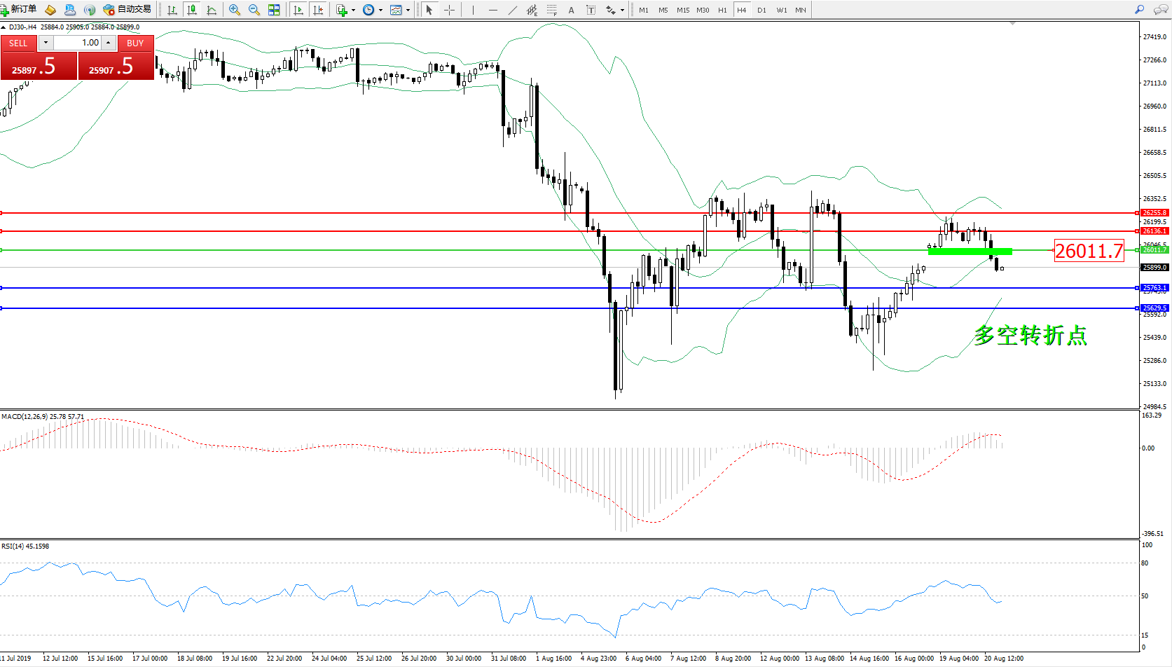 道琼斯指数820日(周二)收盘下跌173.40点,跌幅0.66%,报25962.44点。投资者对美国经济前景再次感到担忧,欧洲政局的动荡也给政府债券收益率带来压力。三大股指尾盘跳水,均收于日低点。一直担心投资者过于依赖美联储降息,对经济前景过于自满,现在我们看到市场正在意识到这些风险。目前存在太多不确定性,短期内不太可能看涨。国债收益率曲线的倒挂引发美国投资者不安,在美联储会议记录公布前,以及杰克森霍尔会议的消息出来之前,人们都在寻求逢低买进。
