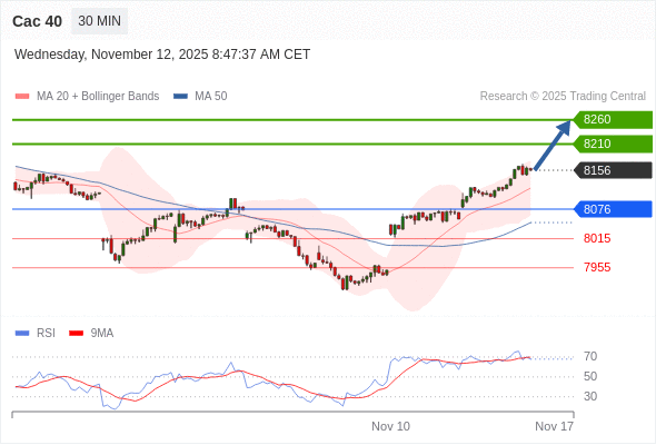 在 8076 之上,看涨,目标价位为 8210 ,然后为 8260 。