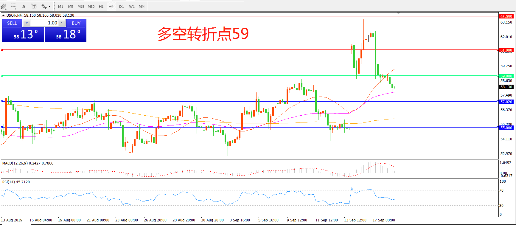 交易策略: 在59.00之下看跌,目标57.00 55.00
