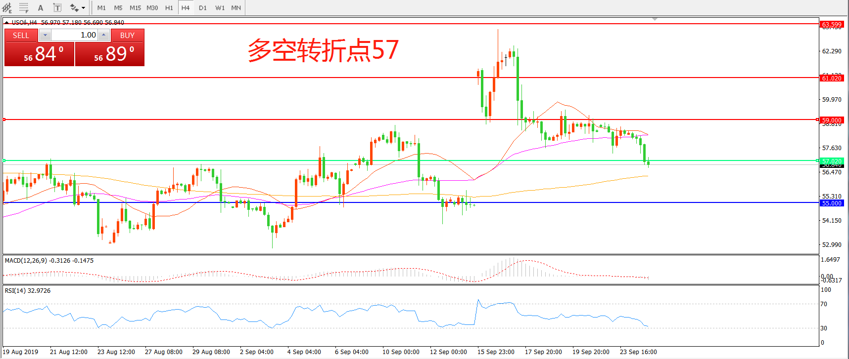 交易策略: 在57.00之下看跌,目标55.00 52.50