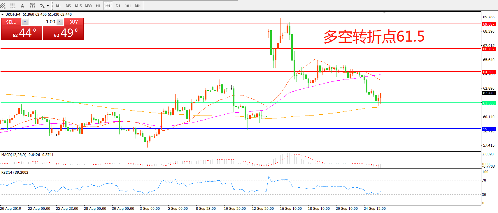 交易策略:在61.50之下看跌,目标59.00     57.00