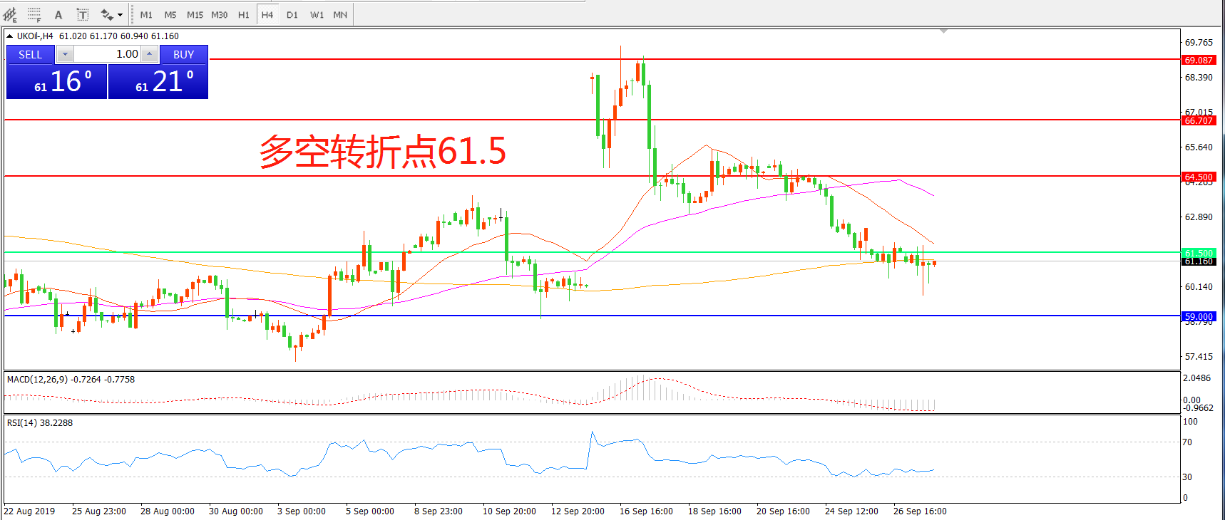 交易策略:在61.50之下看跌,目标59.00   57.00