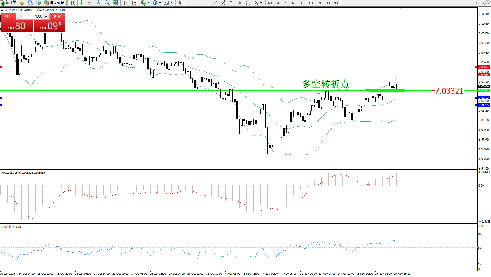 交易策略:7.03321上方看涨,目标7.05014、7.05877
