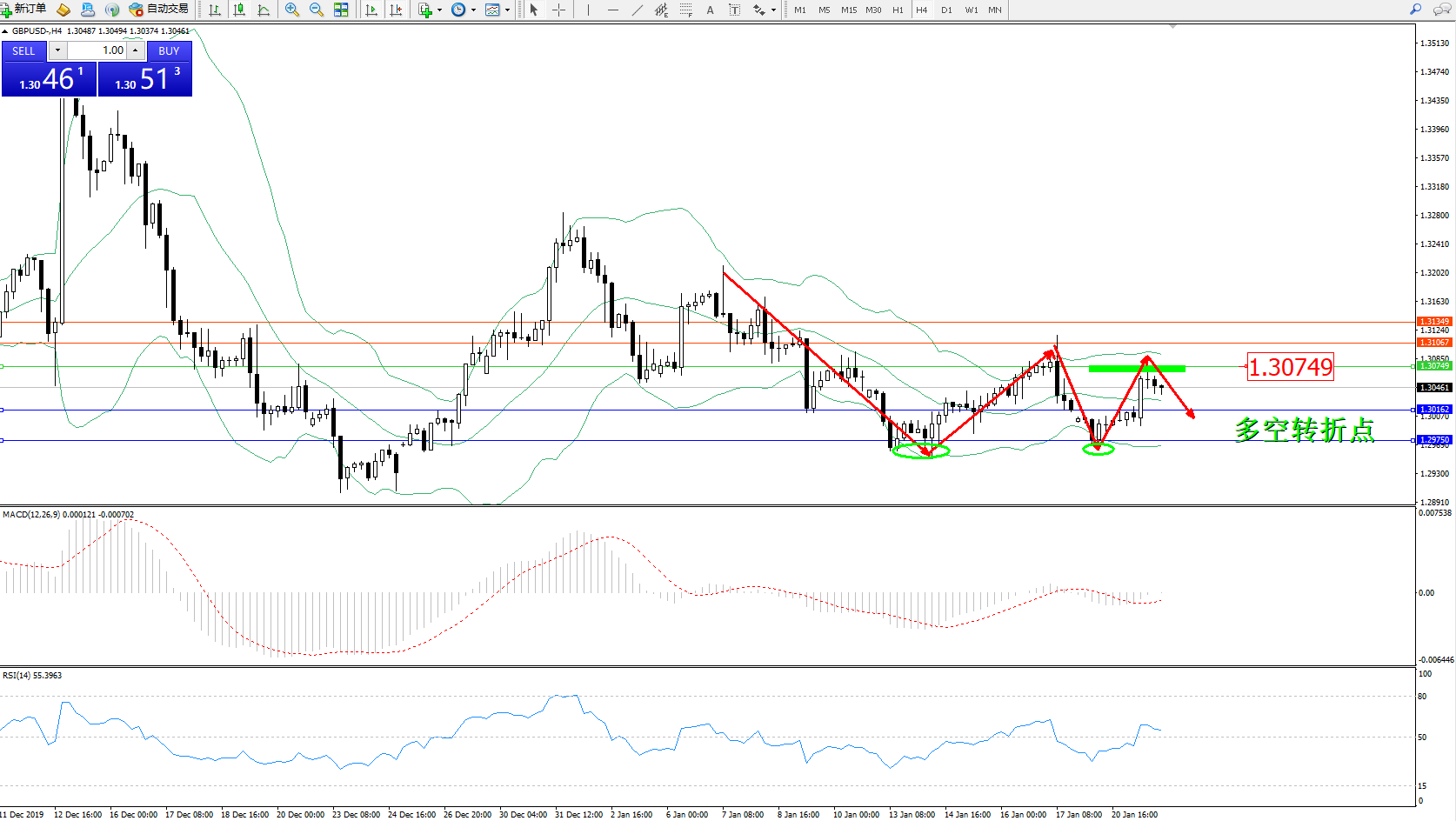 交易策略:1.30749下方看跌,目标1.30162,1.29750