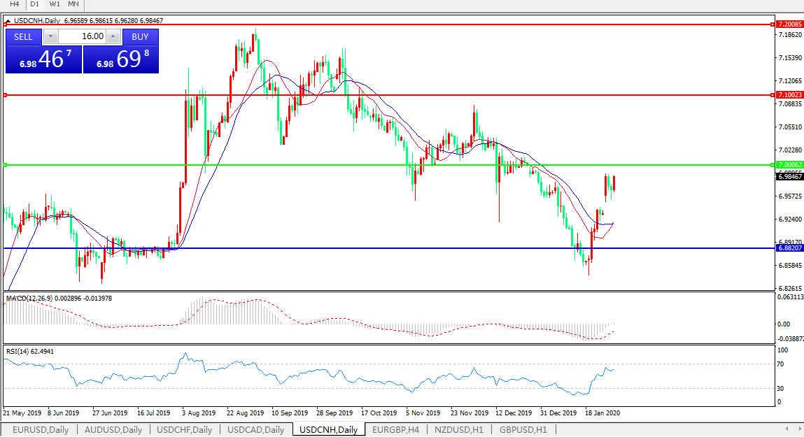 交易策略: 在7.0000之下,看跌,目标价位为6.8820,然后为6.7600。