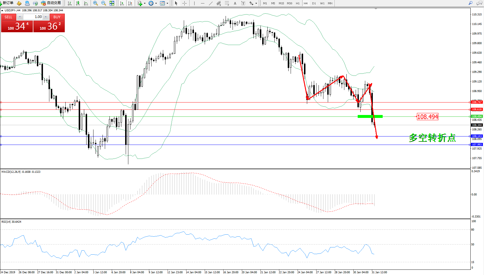 因全球公共卫生事件对经济影响的担忧加剧。避险货币大涨,美元兑日元跌0.56%至108.35,创出自1月8日以来的最大跌幅,整个市场仍然受到避险情绪的影响,欧美股市再度走低,而尽管中国制造业和服务业PMI显示中国经济依旧稳健,但鉴于亚洲突发公共卫生事件仍在发展,日元后期可能再度因避险需求而上升。