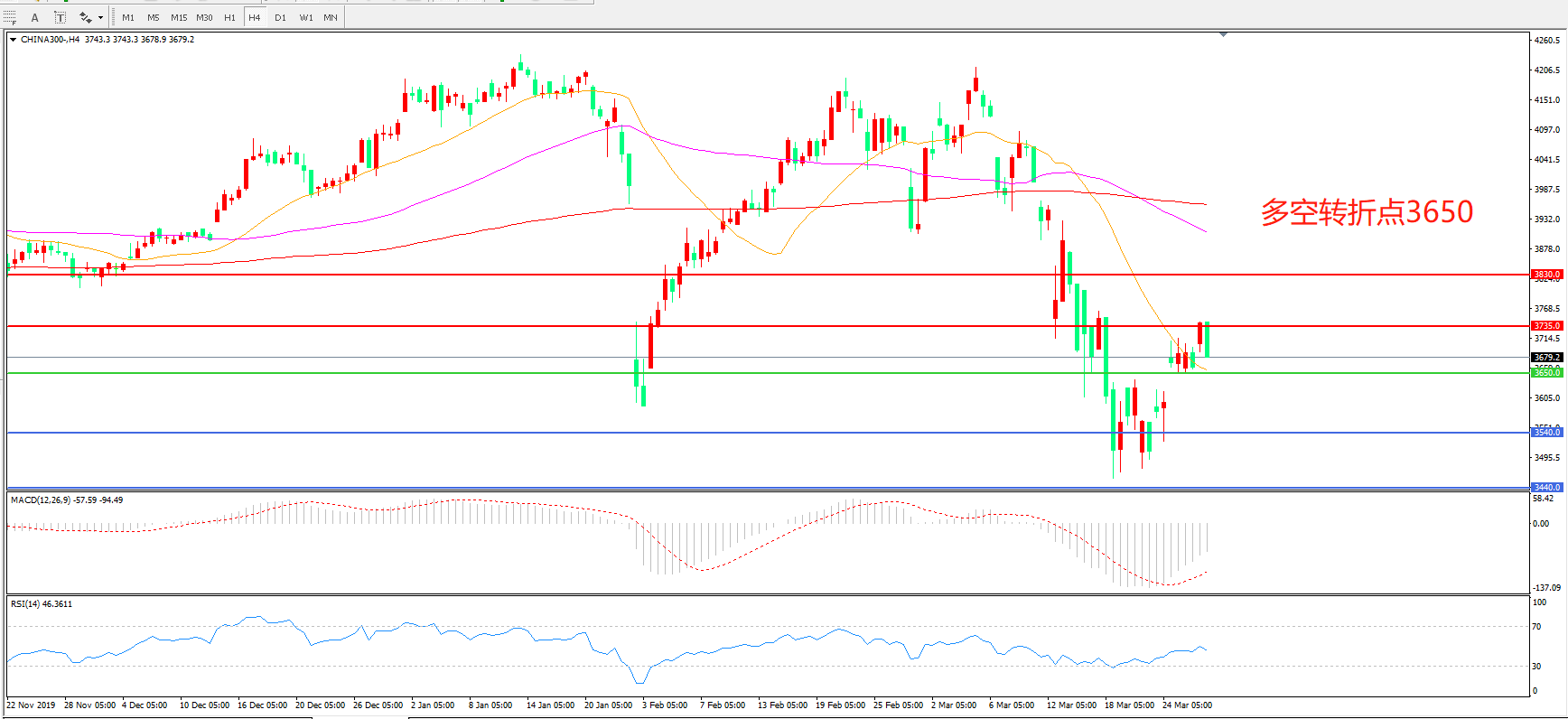 沪深300  CHINA 300   4小时图