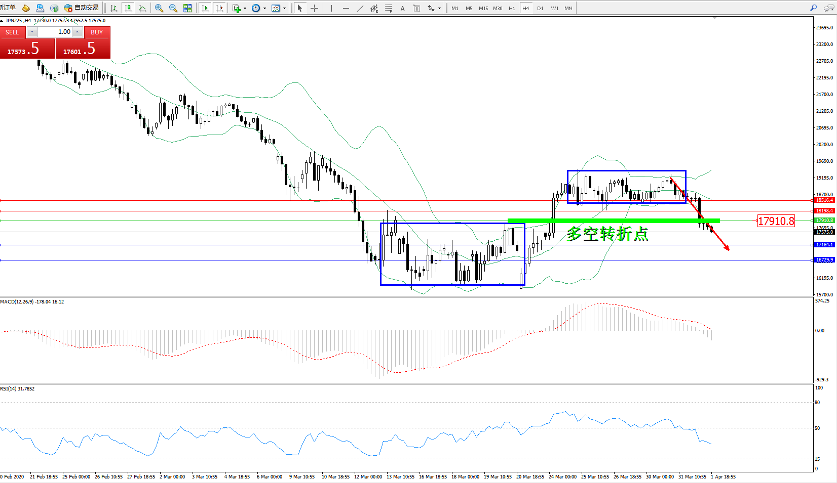 日经225指数41日(周三)收盘下跌839.51点,跌幅4.44%,报18077.50点。日本股市周三以大跌走势作为新会计年度的开始,受到新型冠状病毒疫情影响,投资人正为东京可能封城、全球经济衰退、企业获利及派息锐减等因素作准备;日经指数收盘重挫4.5%至一周收盘低点18,065.41点,市场交投冷清,主板成交总值为2.72万亿日圆,创一个月来最低。一些短线客午后抛售股票期货,许多投资人不愿买进,选择观望日本会不会宣布全国进入紧急状态,并在东京实施封锁措施;日本股市的大跌对全球市场情绪拖累明显,美国三大股指期货一度跌逾3%,韩国股市跟跌近4%,欧洲股市普遍下跌,斯托克600指数下跌近3.5%