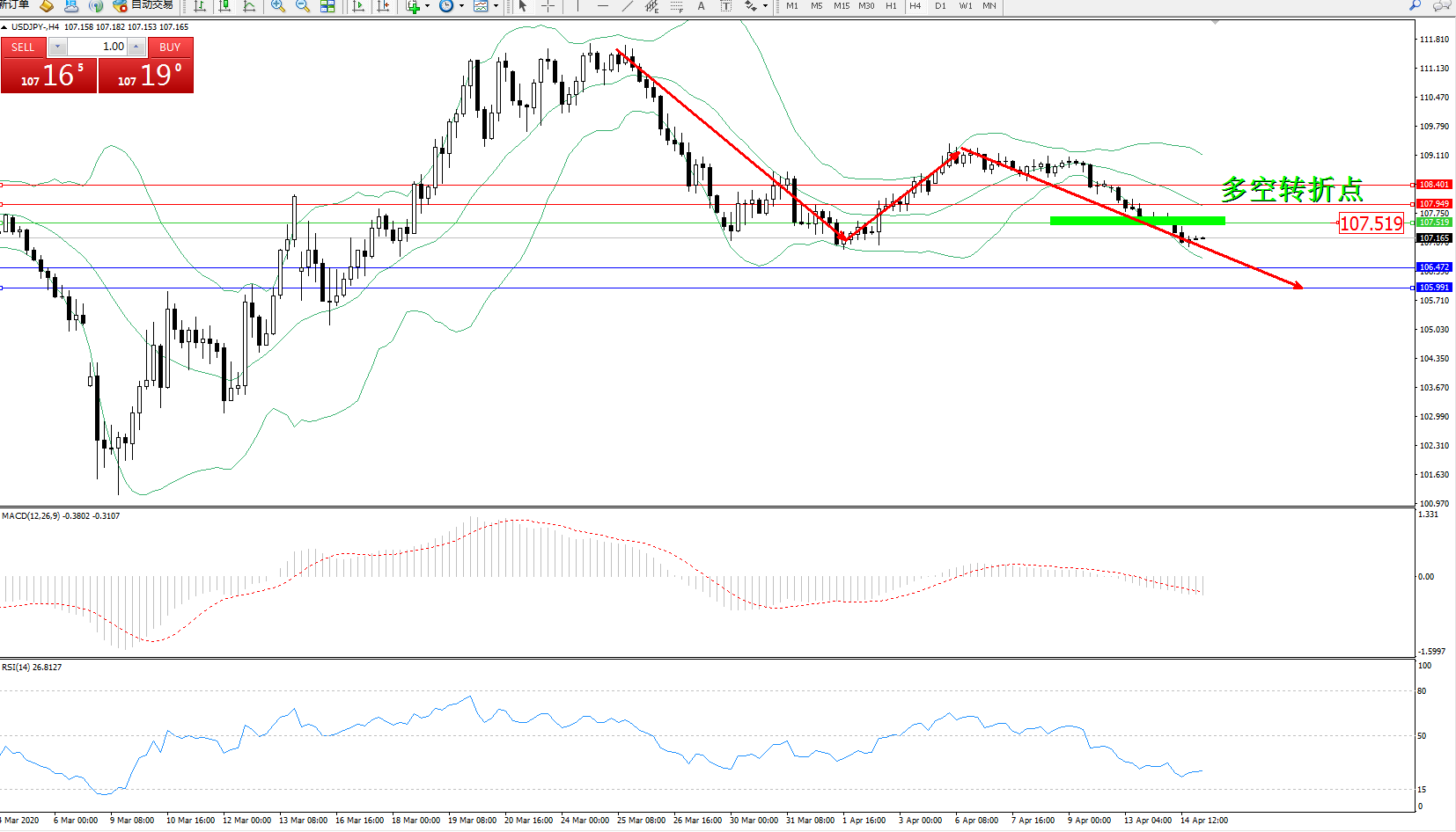 技术点评:空头动力持续宽幅震荡下移中,延续布林带指标下轨弱势不断下探,布林带指标呈张口走势中,下行动力明显,有迹象下移态势,MACD指标处于0轴线下方空头区域弱势徘徊平移中,RSI指标处于50均衡线下方弱势整理下行后维持整理平移;