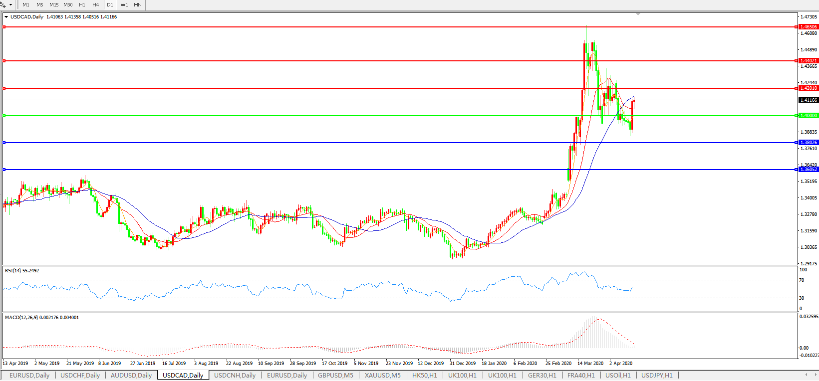 交易策略: 在1.4000之上,看涨,目标价位为1.4200、1.4400