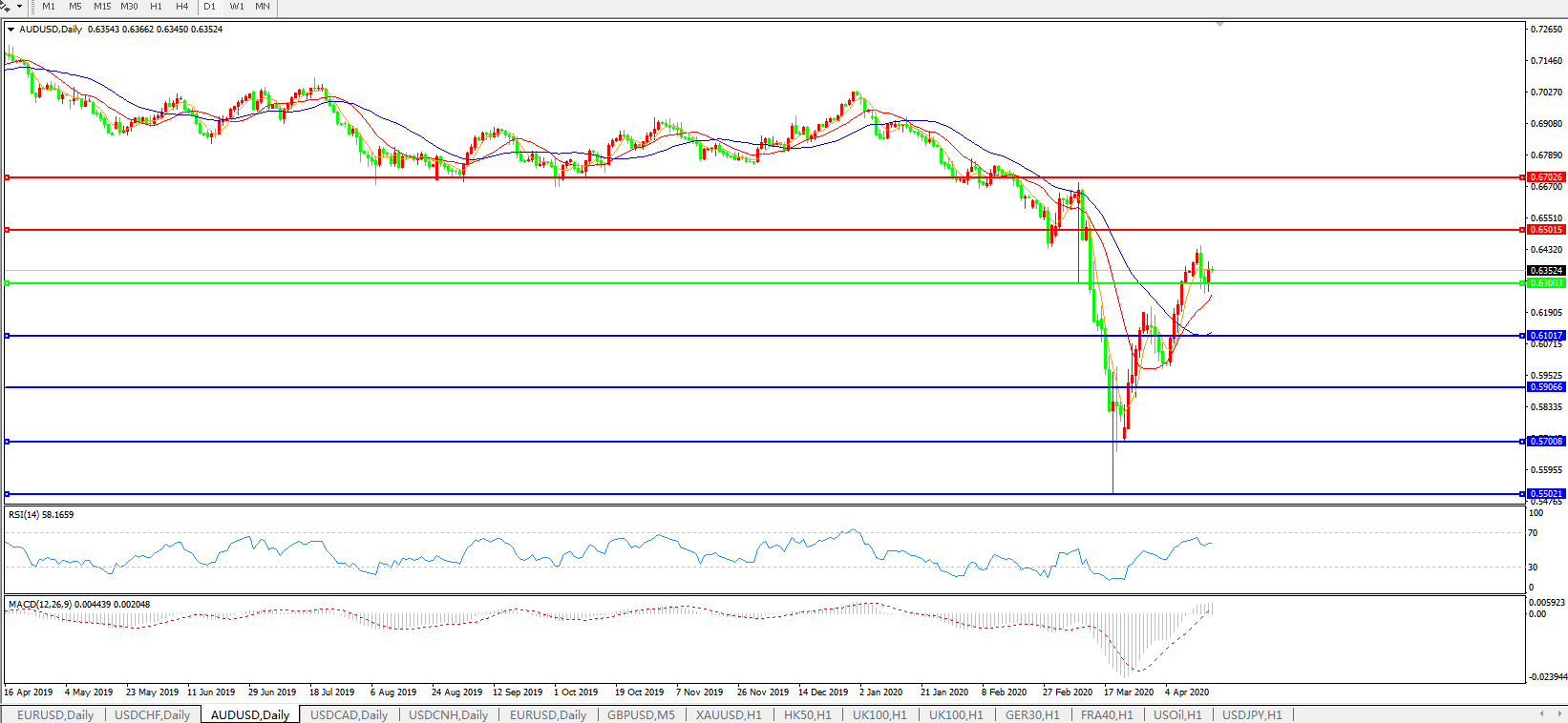 澳元兑美元在隔夜跌触10日均线切入位0.6264之后录得反弹,周五亚洲时段,受中国3月国民经济运行数据向好拉动,澳元兑美元一度触及高点0.6384,但随即便因为美元指数的重新走强而再度滑落,重新退守0.63关口。 投资者近日以来对于风险商品系货币的前景并不予以看好,原因在于种种迹象显示,在新型冠状病毒疫情结束之后,全球需求的服务进程仍将是漫长仍痛苦的过程,这对于产业链最上游的大宗商品市场也就意味着长期的熊市。虽然,中国日内数据好于市场最悲观的预期,但是却也显示复工复产之后经济全部恢复动能仍需时日,这是全球其他地区之后前景的参照,而这对于初级产品短期需求前景也因而仍是利空;短线来看澳元汇价在0.63心理关口,以及10日均线切入位0.6297处暂有支撑,但周末来袭前,市场对美元的需求或许还会给非美货币带来额外的压力。而上方60日均线水平目前来看仍然强阻力,短期内若无法突破,则自3月下旬以来的持续上升趋势将面临遭到扭转的命运。